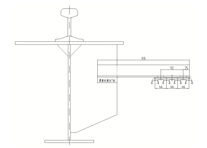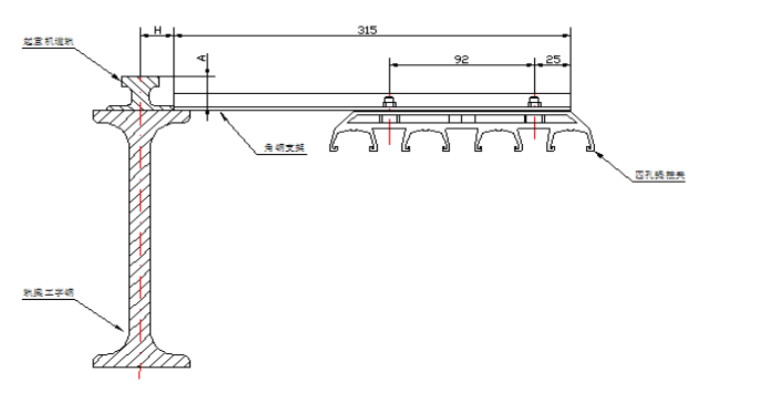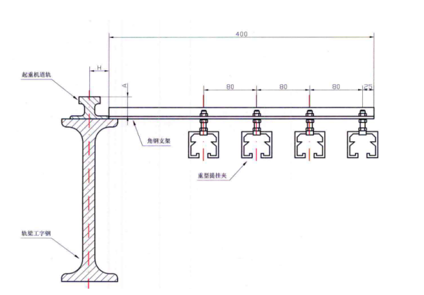 b、重型:一字型角鋼支架安裝在軌道壓板上,或焊接在鋼構(gòu)梁頂板或筋板上,水平安裝。
