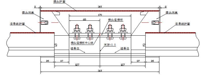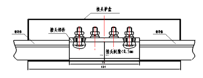 1.鋁接頭在安裝時(shí)應(yīng)放在兩根滑線中間,輕型兩端各35mm,重型兩端各85mm。避免出現(xiàn)因方頭螺栓分布不均,造成兩端受力不均勻而出現(xiàn)滑線脫節(jié)現(xiàn)象。